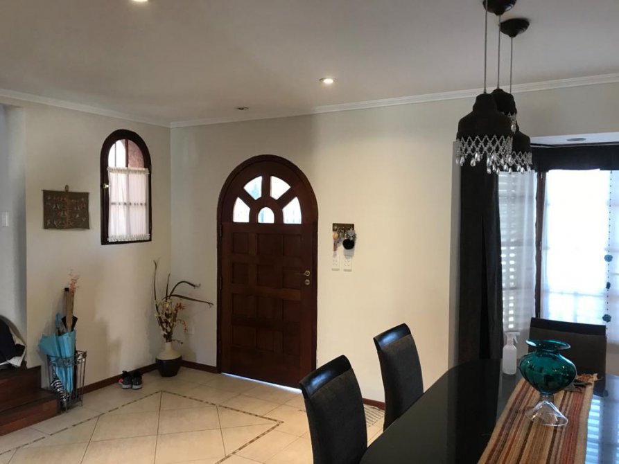 P.B. JARDIN AL FRENTE ENTRADA DE AUTOS, PORTON DE REJAS Y DE GARAGE AUTOMATIZADOS. HALL RECIBIDOR, ESTAR LIVING COMEDOR CON PISOS PORCELANATO, BAÑO COMPLETO. COCINA CON MUEBLES ALTO Y BAJO MESADA. MESADA MARMOL NEGRO BRASIL. HORNO EMPOTRADO Y ANAFE. VENTANALES VIDRIO REPARTIDO SALIDA AL JARDIN.
