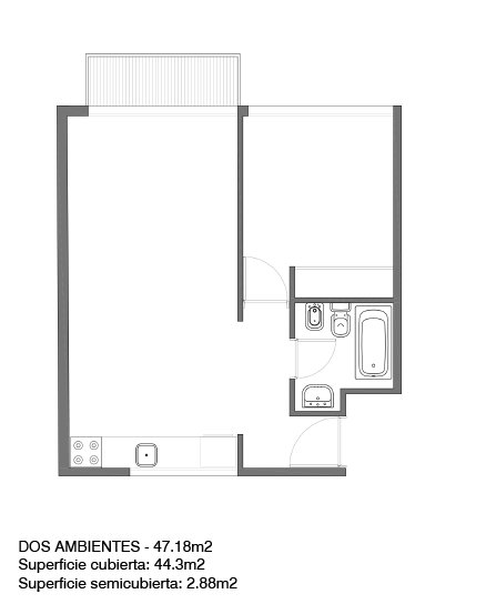 La unidad cuenta con un amplio estar comedor con balcón al contrafrente, cocina totalmente instalada con muebles bajo y sobre mesada con instalación para lavarropas, un baño completo y un dormitorio con placard.