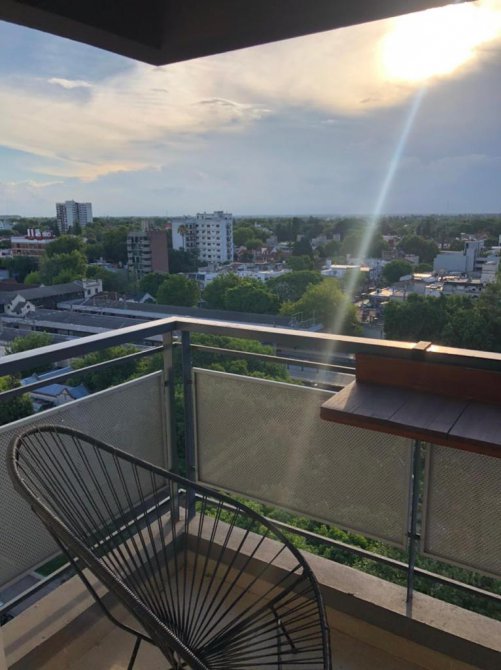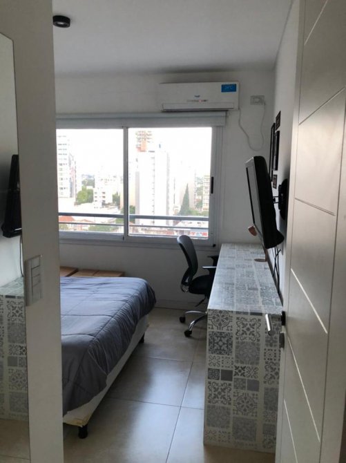 Ubicado en un 9° piso al frente, la unidad cuenta con un amplio estar comedor con balcón al frente, cocina totalmente instalada con muebles bajo mesada y alacena, baño