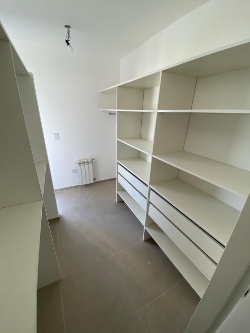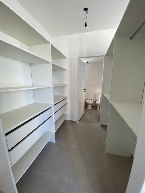 La unidad posee dos dormitorios completos, ambos con placares con interiores terminados, y dos baños completos. La habitación principal incluye un vestidor, baño en suite y salida a un balcón privado.