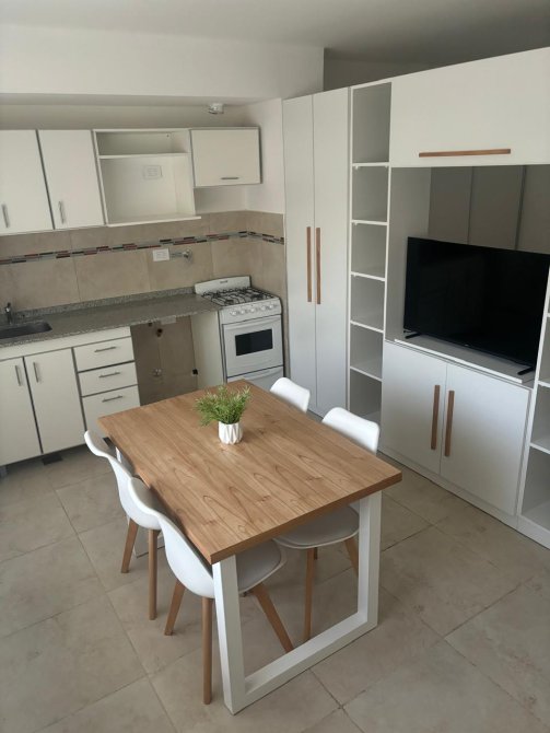 Cocina completamente equipada con cocina y heladera incluidas, para que no pierdas tiempo en nada más.