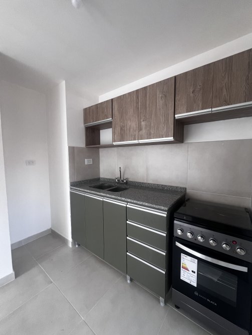 La unidad se compone de un amplio y luminoso ambiente principal con cocina integrada, equipada con artefacto eléctrico, alacena y bajo mesada. Cuenta con termotanque eléctrico para provisión de agua caliente. El baño es completo, con bañera y ducha incorporada, revestimientos modernos y grifería nueva. El dormitorio, de generosas dimensiones, dispone de espacio para placard y buena ventilación natural.