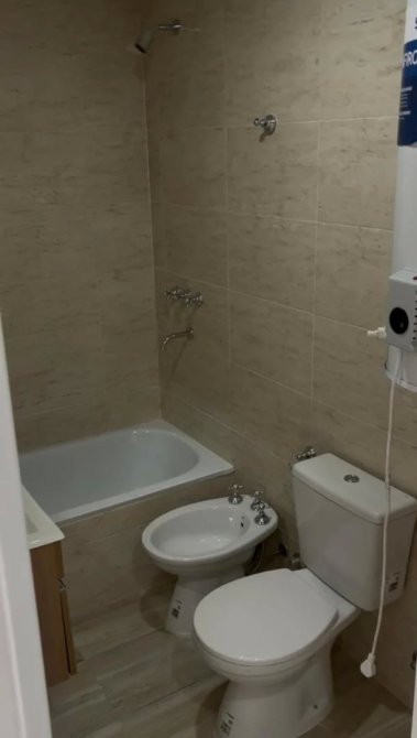 El departamento cuenta con un ambiente único, muy luminoso, cocina integrada equipada con artefacto eléctrico y termotanque, y baño completo con bañera y espejo.