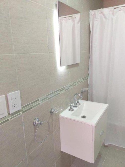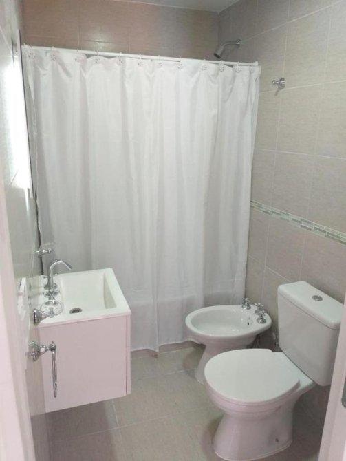 Baño completo con bañera y conexión para lavarropas de carga superior.