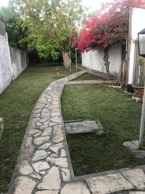El fondo libre presenta amplias dimensiones, ideal para área verde o jardín, y cuenta con una parrilla adicional al aire libre.
