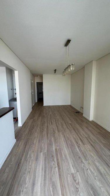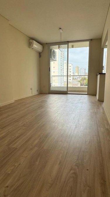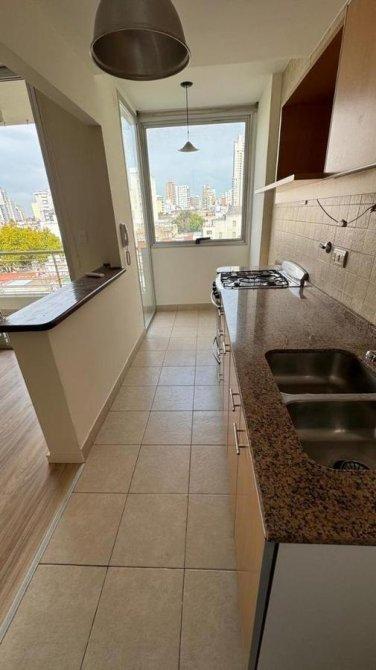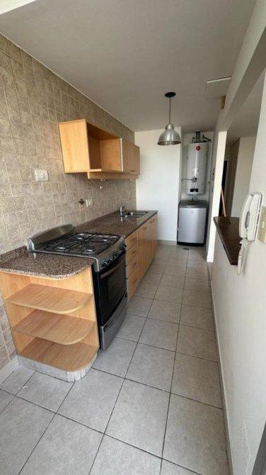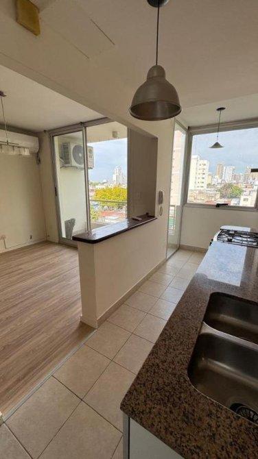 La propiedad cuenta con un living comedor equipado con aire acondicionado frío/calor, que se integra funcionalmente con una cocina tipo americana, provista de barra desayunadora, muebles bajo mesada y alacena, artefacto de cocina a gas en acero inoxidable, lavarropas de carga vertical y ventilación cruzada, lo que garantiza confort y buena circulación de aire.