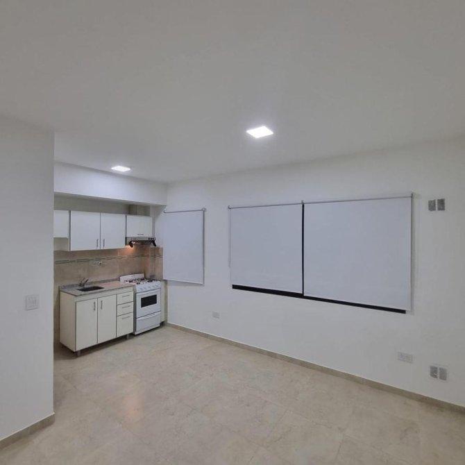 El departamento cuenta con carpinteria completa en cocina, muebles bajo y alto mesada, anafe eléctrico y horno a gas, aire acondicionado, cortinas, baño completo con bañera y conexion para lavarropas carga superior.