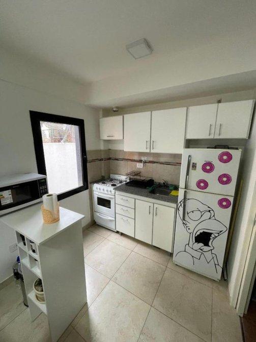 Cocina equipada: carpintería completa con muebles bajo y alto mesada, cocina a gas. Con horno y parrila.
