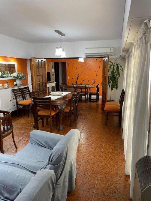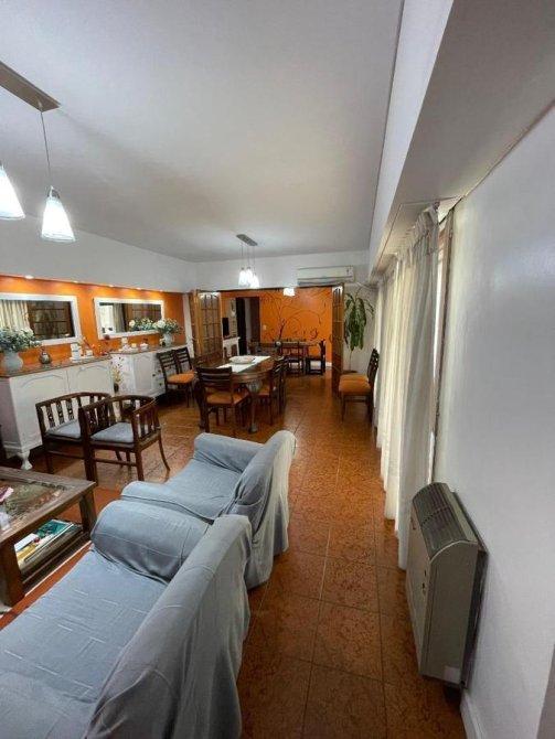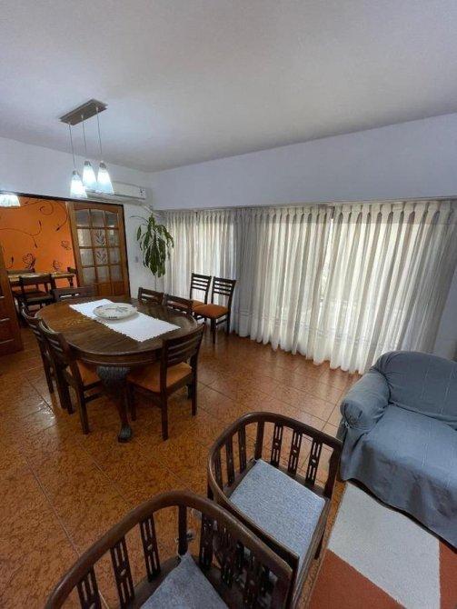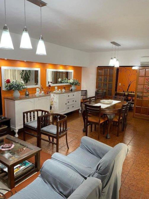 Continuando por la otra puerta, te encontrarás con un amplio living comedor bañado en luz natural gracias a su generoso ventanal y elegantes cortinas blancas. Este espacio, dividido por una puerta, se conecta fluidamente con el comedor diario, perfecto para disfrutar de comidas en familia.