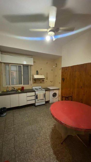 Cocina comedor diario con muebles bajo mesada, y conexión para lavarropas.