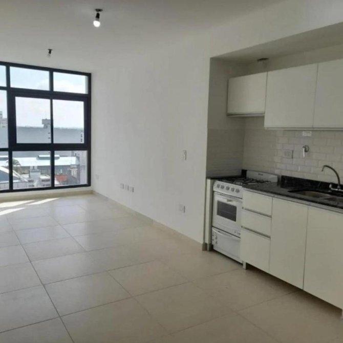 El espacio, amplio y funcional, permite una cómoda división de ambientes. La cocina se presenta completamente equipada con muebles bajo mesada y alacena, artefacto de cocina a gas de cuatro hornallas, y el confort se completa con aire acondicionado frío/calor y un baño completo con bañera.