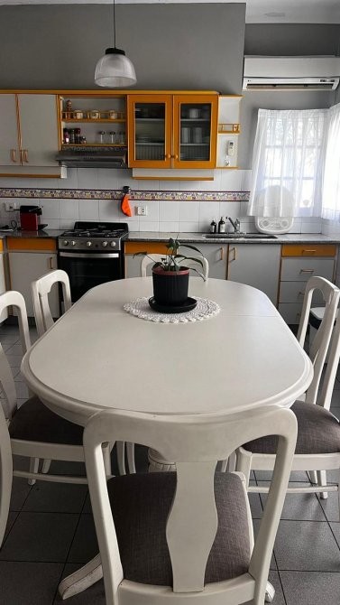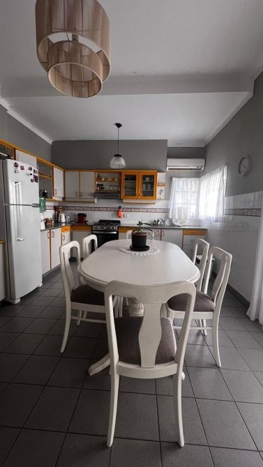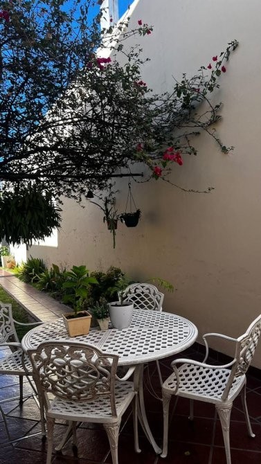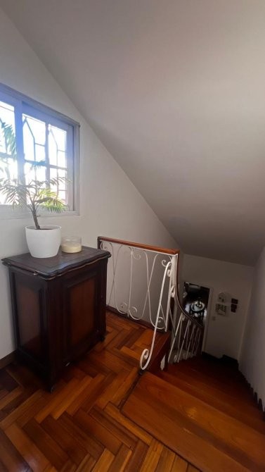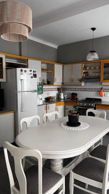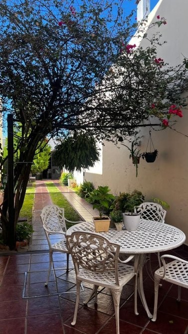 La propiedad se destaca por su calidez y funcionalidad, comenzando en PLANTA BAJA por una cocina-comedor amplia que combina mobiliario blanco con detalles en amarillo, mesadas de granito y un sector de comedor diario muy luminoso. El living principal ofrece un ambiente acogedor gracias a sus pisos de madera natural en espiga y una chimenea de ladrillo visto que sirve como eje central del espacio. El dormitorio principal es sumamente luminoso con vistas hacia el patio de la casa, cuenta con placard empotrado de pie, ventilador y cómoda. Por su parte, el baño principal está totalmente revestido en cerámicos y cuenta con bañera con mampara, sanitarios completos y un gran espejo. Las áreas de transición han sido muy bien aprovechadas mediante pasillos con bibliotecas empotradas de piso a techo y un espacio de escritorio bajo la escalera de madera y hierro que conduce a la planta alta.