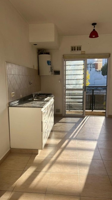 Cocina con muebles bajo mesada, conexión para lavarropas, termotanque eléctrico.