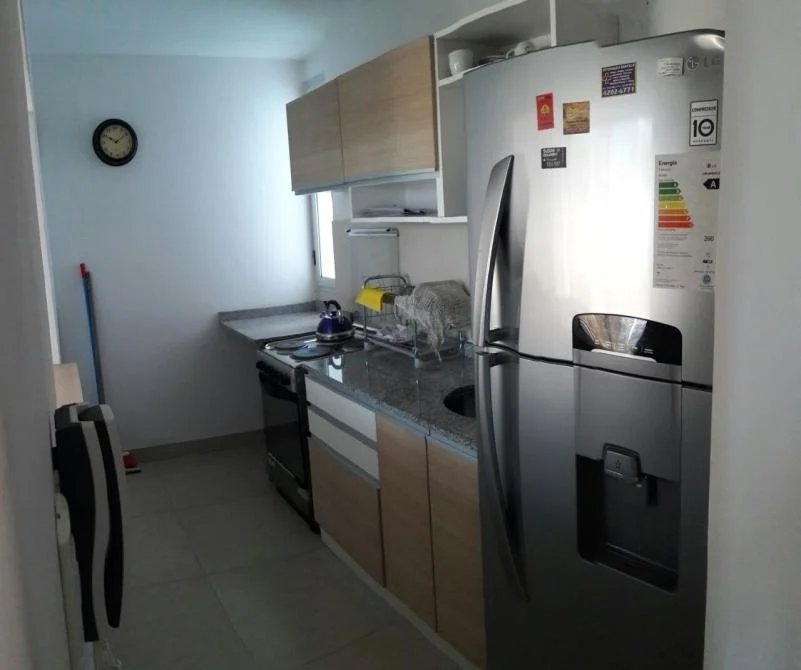 El mismo se ubica en un 3 piso al frente, y cuenta con un amplio estar comedor con balcón aterrazado, cocina separada por barra desayunadora, muebles bajomesada y alacenas, artefacto de cocina de acero eléctrico, vestidor con placard, baño completo con bañera, dormitorio con aire acondicionado y cochera semicubierta.