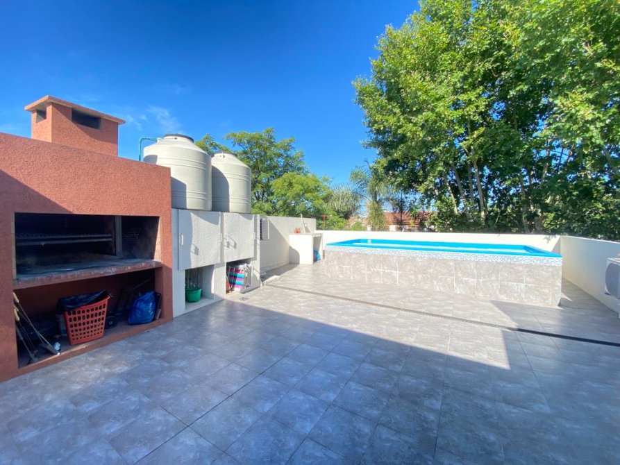 Planta Alta: Hall con piso cerámico y acceso a dos dormitorios. Tercer dormitorio con piso cerámico y placard. Cuarto dormitorio con piso cerámico y placard. Baño completo con ducha. Terraza con parrilla y pileta de material.