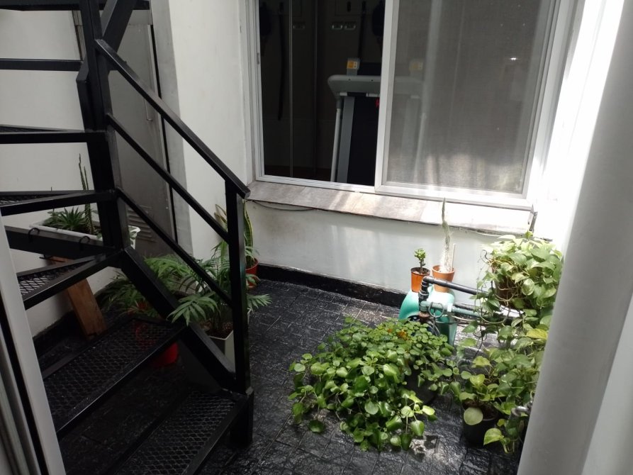 Garage para un auto con espacio de guardado y lavadero. Además cuenta con entrada para un segundo auto pequeño al descubierto.