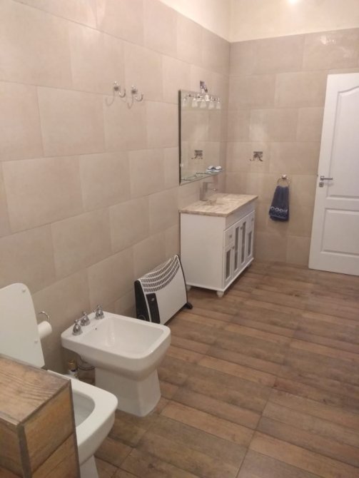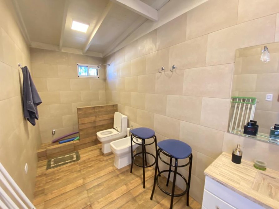 Moderna casa 6 ambientes a 100 metros de 29 de septiembre. La misma cuenta con jardín con rejas al frente. Hall de ingreso con doble circulación (a la parte de los dormitorios y al living). Amplio living con piso cerámico, moderna cocina semi integrada con muebles alto y bajo mesada. Baño completo con bañera. Dormitorio luminoso con piso cerámico (son dos dormitorios unificados en uno) con ventana al frente. Segundo dormitorio con piso flotante, placard y baño en suite con hidromasaje. Patio cubierto con acceso a panta alta.