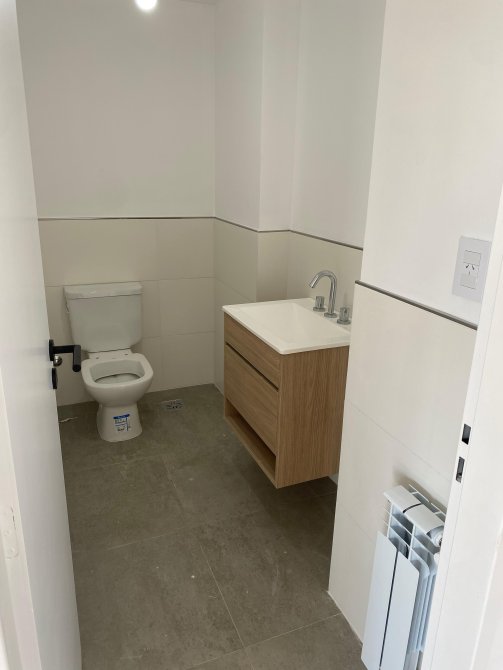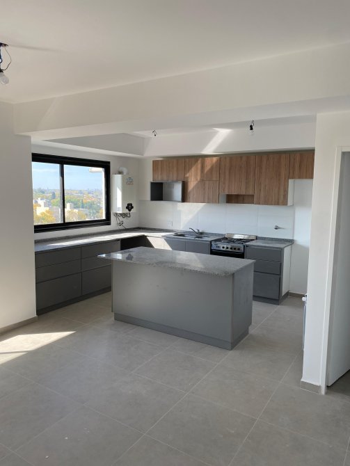 El living comedor es amplio y súper luminoso, con acceso directo a la cocina, que cuenta con isla central, cocina a gas, caldera individual, bajo mesada y alacena, conexión para lavarropas y un práctico baño de servicio.