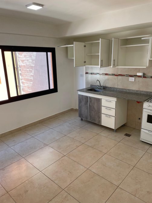 Esta unidad ofrece un amplio ambiente único, ideal para quienes buscan un espacio cómodo y funcional. La cocina está equipada con una cocina a gas y mesada, optimizando el área para uso diario y facilitando la preparación de alimentos. Además, cuenta con un amplio placard que actúa como divisor de espacio, proporcionando una separación visual que permite diferenciar el área de descanso, manteniendo la unidad acogedora y bien organizada.