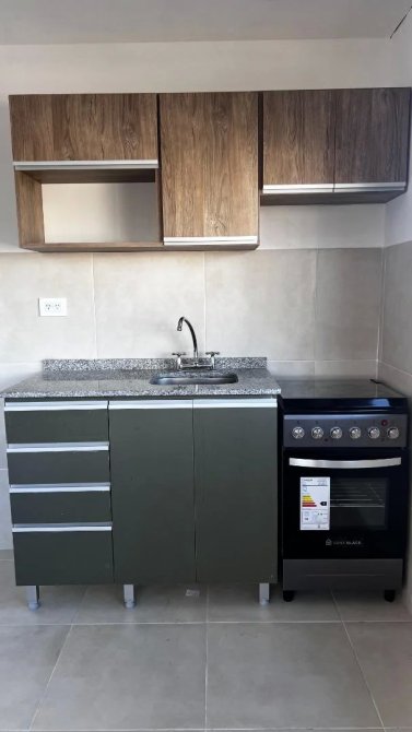 Desde el ingreso, la unidad destaca por su luminosidad y el cuidado en cada detalle. La cocina, integrada y funcional, está equipada con artefacto eléctrico, alacena y bajo mesada, en perfecta armonía con el ambiente principal. El termotanque eléctrico garantiza una provisión eficiente de agua caliente.