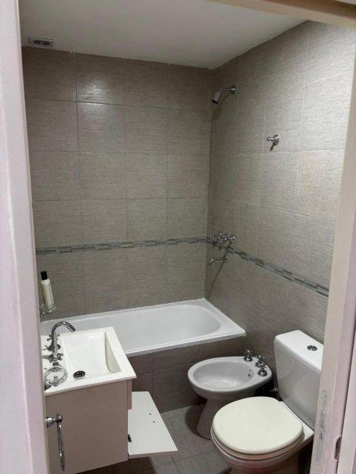 Baño completo con bañera y conexión para lavarropas de carga superior.