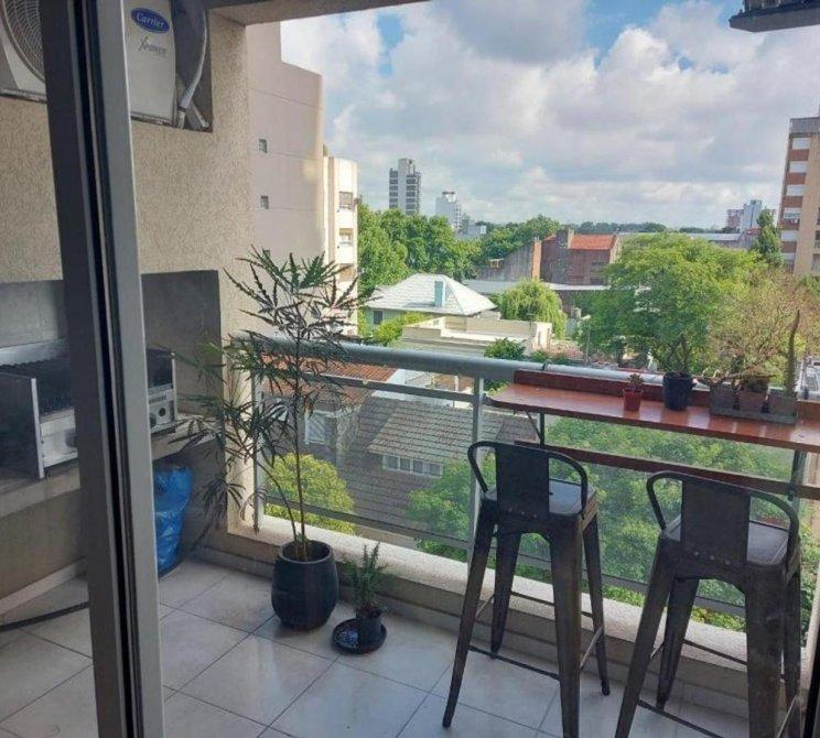 Ubicado en la calle Talcahuano N° 337, entre Belgrano y Pueyrredón. En un 4° piso al frente, con hermosa vista al norte, cuenta con un amplio estar comedor con balcón y parrilla, cocina totalmente instalada con espacio para lavarropas, un dormitorio con placard, un baño completo, cochera descubierta y baulera.