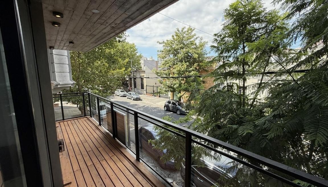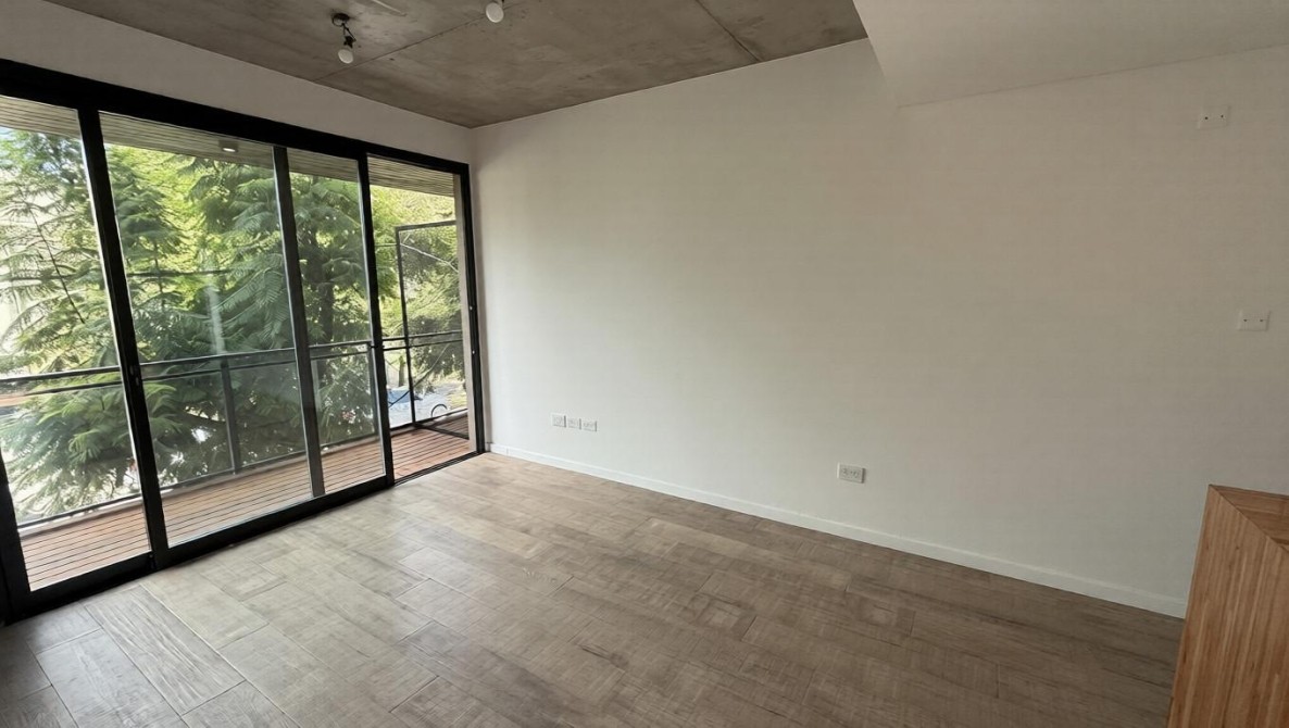 Living comedor con pisos porcelanatto, simil madera, con salida a balcón por ventanal corredizo,